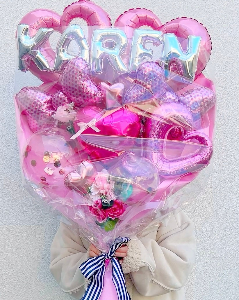【手持ち】バルーンブーケ リボン マゼンタ ピンク(L)アルファベットバルーン入り